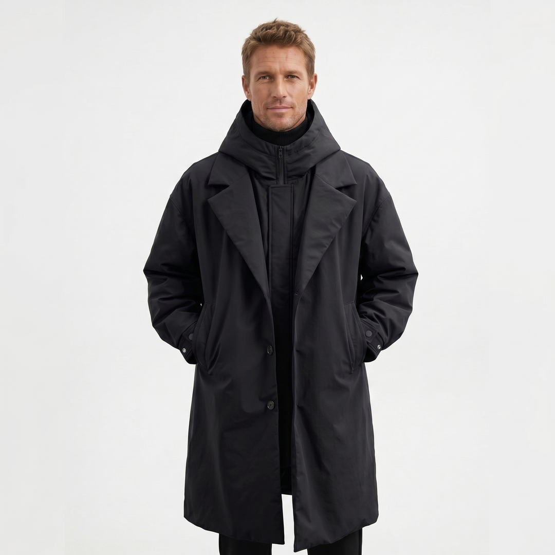 Men's Waterproof Hooded Mid-Length Trench Coat – Two-Piece Cotton Winter Jacket